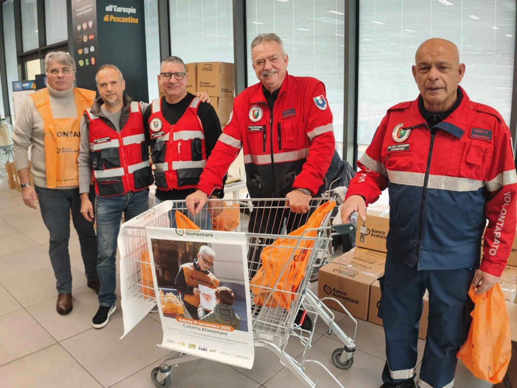 Il 15 novembre 2025 si è svolta la Giornata Nazionale della Colletta Alimentare, un appuntamento ormai consolidato e sentito in tutto il Paese. Nella sola provincia di Verona sono stati 3.895 i volontari impegnati presso 205 supermercati, a testimonianza di una partecipazione diffusa e generosa. Anche quest’anno nove volontari della nostra Sezione ANC di Pescantina hanno dato il loro contributo, garantendo dalle ore 8,30 alle ore 19,00 la raccolta presso il supermercato Eurospin di Pescantina, che ha messo a disposizione spazi dedicati per la raccolta. Grazie alla collaborazione tra i volontari, i clienti e la disponibilità del punto vendita, è stato possibile raccogliere circa 950 chilogrammi di alimenti non deperibili, che saranno destinati alle famiglie in difficoltà tramite la rete del Banco Alimentare ETS, promotore dell’iniziativa. Un sentito ringraziamento va a tutti coloro che, anche con un piccolo gesto, hanno scelto di donare e sostenere questa importante iniziativa di solidarietà.